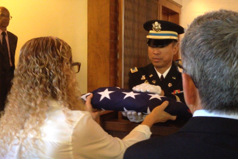 My Mom being handed the US Flag from my Grandfather’s funeral.